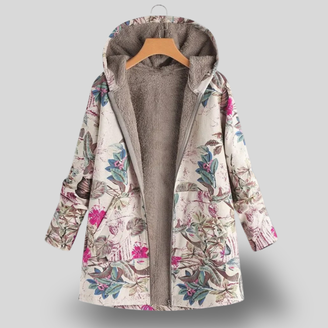 Mireille | Boho Floral Fleece-Lined Hooded Jacket